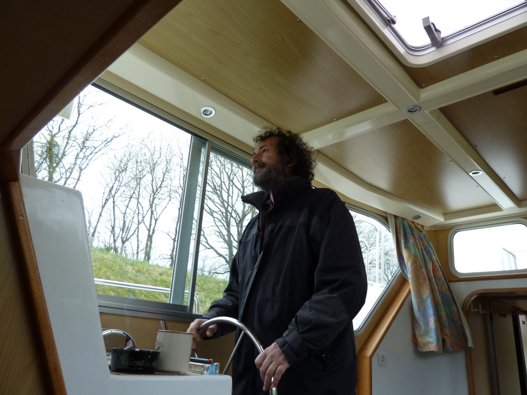 Käptn am Fahren zur nächsten Schleuse