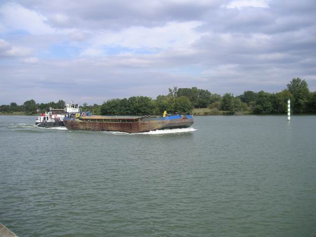 Auf diesem Stück der Saône gibt es noch regelmässig Treffen mit der Berufsschiffahrt.