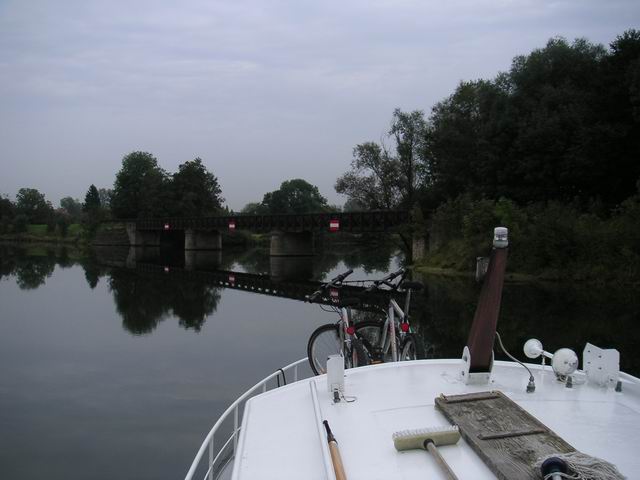 Die Überquerung des Doubs bei Voujeaucourt. Weiter oben ist er nicht mehr schiffbar.
