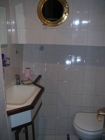 Das Badezimmer, richtig schön mit Kacheln.
