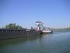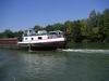 Und rein in die Schleuse, im Gegensatz zu uns füllt dieses Schiff fast die ganze Schleuse. Dutzende von Kühen säumen den Uferbereich. Links das Wehr von Charnay-lès-Châlon und rechts die Zufahrt zur vorherigen Schleuse. Das Wehr in seiner vollen Breite.