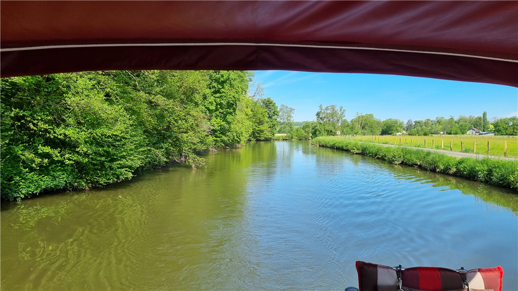Heute machten wir eine Spazierfahrt nach Ormoy, bis vor die Schleuse. Wir probierten auch aus, ob wir mit dem Bügel unter der Brücke durchpassten. Es war aber zu eng, und so testeten wir das Herunterlassen des Bügels "in Fahrt". Auch nicht wirklich praktikabel, vor allem wenn es noch andere Boote und Wind hat.
