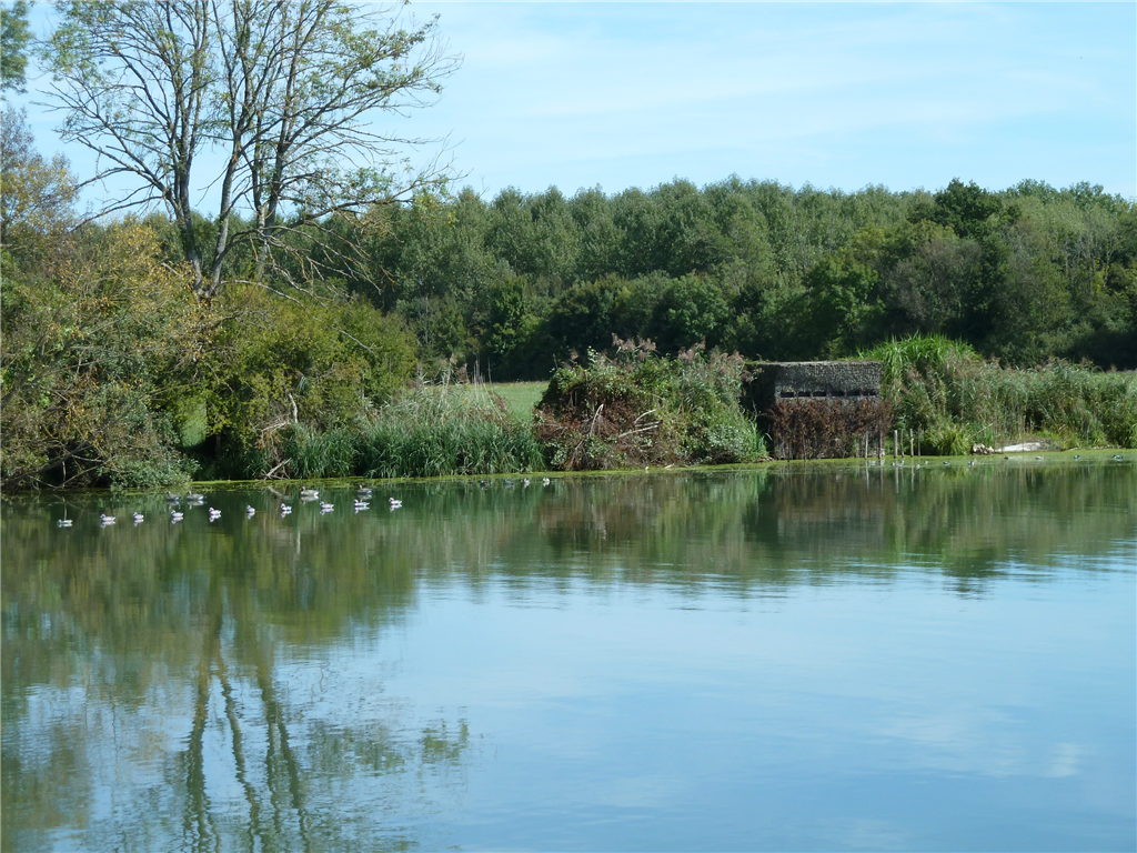 Die Enten sind künstlich. Ein Jägerhäuschen?