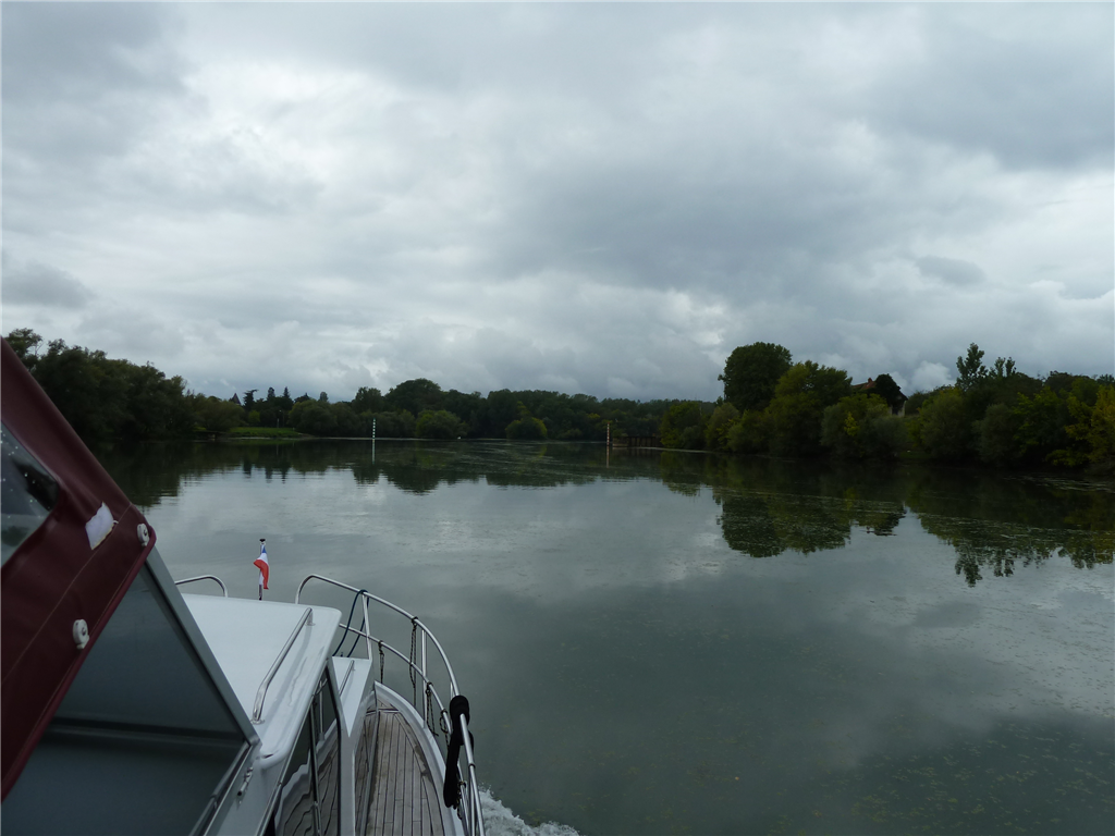 Die Durchfahrt übers alte Wehr von Verdun sur le Doubs