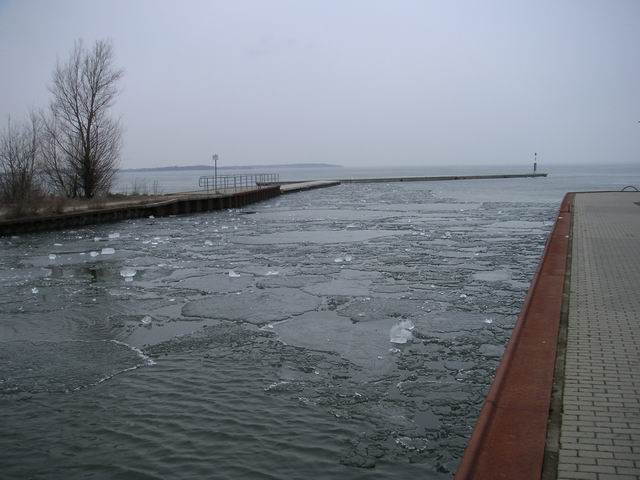 Mit ein bisschen Wind treiben die gebrochenen Schollen vom Hafen auf die Müritz