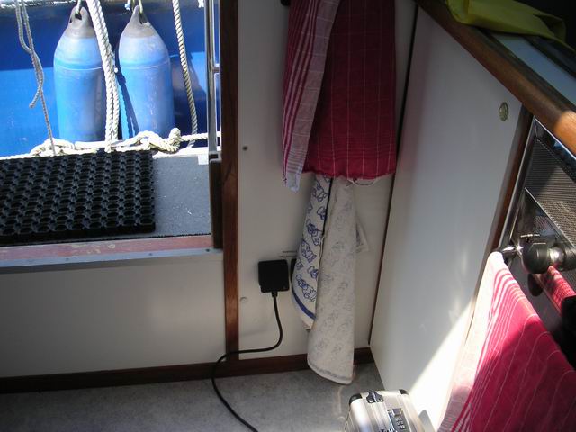 Steckdosen für Landstrom direkt vor der Spüle.