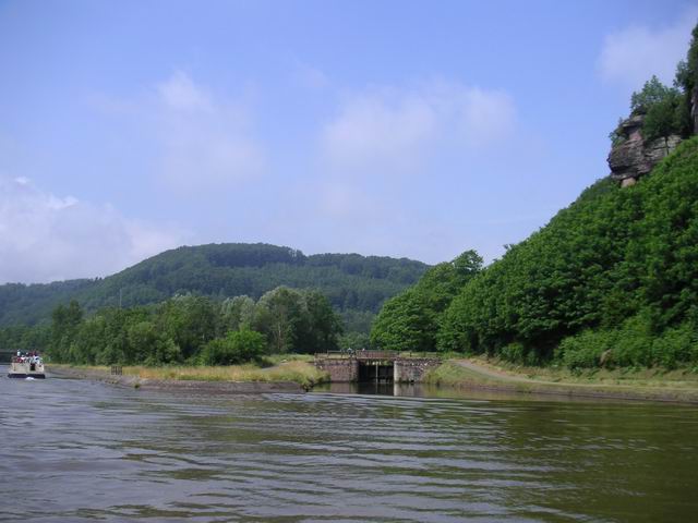Hier fängt die alte Schleusentreppe an, die durch den Schrägaufzug ersetzt wurde.
