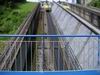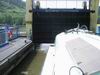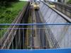 Hier fängt die alte Schleusentreppe an, die durch den Schrägaufzug ersetzt wurde. Diese Leine wird sich irgendwann verklemmen. Der Schrägaufzug, hier müssen wir rauf. Warten auf die Freigabe. Genug Platz zum Warten hats.