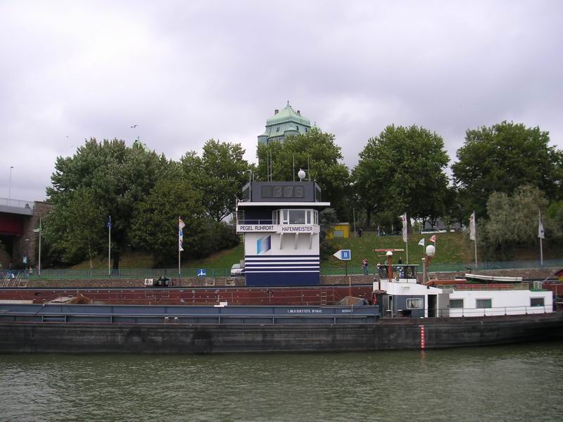 Das Hafenmeisterhaus in Duisburg mit Pegel