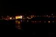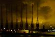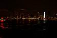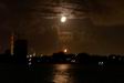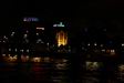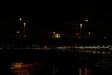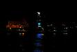 Das gelbe Leuchtdisplay zeigt die Höhe unter der Erasmusbrug Der Rotterdamer Hafen morgens um vier - hier wird immer gearbeitet