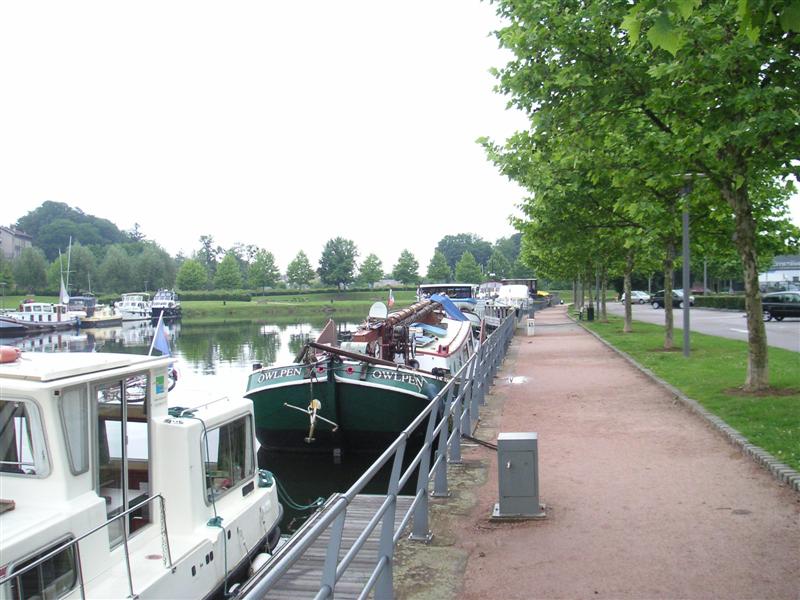 Der Hafen von Epinal ist hübsch gemacht, mit Wasser- und Stromanschluss für alle Schiffe