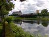 Temporäres Geländer Regentag in Epinal Einer der vielen Moselarme in Epinal