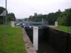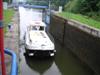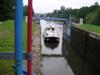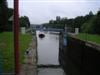 Diese Schleusentore sind ziemlich neu, aus Komposit-Material Einfahrt... und Ausfahrt Gebogene Tore halten wohl mehr aus In den Becken zwischen den Schleusen hats Mauern unter Wasser, was für