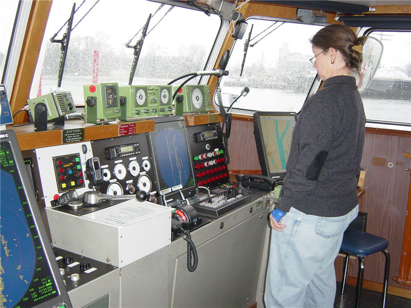 Der Steuerstand am ersten Tag, noch mit offenen Vorhängen