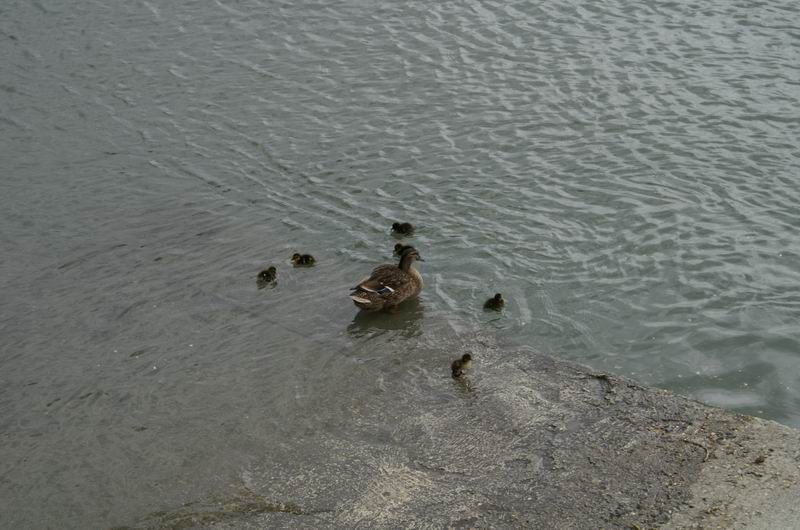 Die Entenmutter passt gut auf ihre Jungen auf