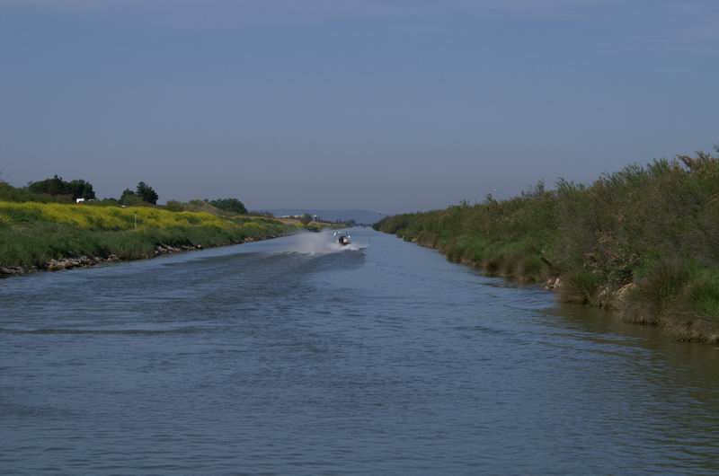 "Ils sont fous, ces ...". Links das Meer und rechts ein See, aber nein, man muss auf dem Kanal Wasserskifahren.