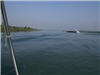 Auch hier stand einmal eine Brücke. Immer gut auf die Karte schauen, Sandbank voraus! Hier wäre eine Anlegemöglichkeit, aber wohl eher für grosse Schiffe. Traffic: zuerst ein Fischerboot...