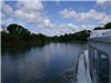 Vielleicht ist das Schiff deshalb so dunkel gestrichen? Jetzt ist die Rhône richtig breit.