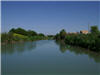 Die erste Carrefour-Schiffstankstelle! Wie immer bei Carrefour sehr schick. Der Lez ist etwas eng, hoffentlich kommt uns keiner entgegen. Ob das wohl Bojen sein sollen?