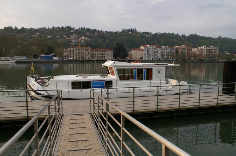 Bei leichter Bewölkung treffen wir am Mittag in Scey ein. Anfangs April ist noch nicht viel los, nur eine weitere Besatzung übernimmt heute ein Boot, und so sind die Formalitäten schnell erledigt. Unsere Pénichette mit dem Namen "Baulay" ist bereit, sodass wir unsere Sachen an Bord bringen können. Über den Winter hat es einen neuen Schwimmsteg in Scey gegeben. Nur Wasser und Strom sind noch nicht fertig angeschlossen, das kommt halt im nächsten Winter, wie uns der Basischef lächelnd erklärt. Nous sommes en France!