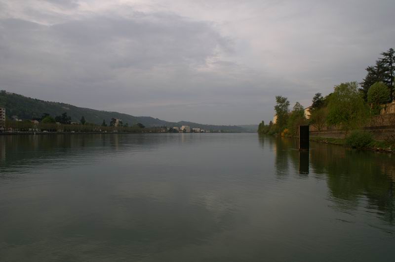Noch knapp bei trockenem Wetter laufen wir den Port de Plaisance de l'Epervière bei Valence an. Die Einfahrt sei etwas heikel und deshalb mit mehreren Bojen (gemäss Flusskarte) respektive zwei Peilpfeilen (gemäss Werbung des Hafens) signalisiert. In Wirklichkeit sind weder die Bojen noch die Peilpfeile vorhanden, aber bei wenig Wind schaffen wir es trotzdem an den "Ponton d'Accueil". Der Hafen ist gross, entsprechend lang auch der Weg bis zur Capitainerie. 23 Euro pro Tag, inklusive Wasser und Strom, das ist wesentlich teurer als alles Bisherige. Man merkt, dass wir Richtung Süden fahren.