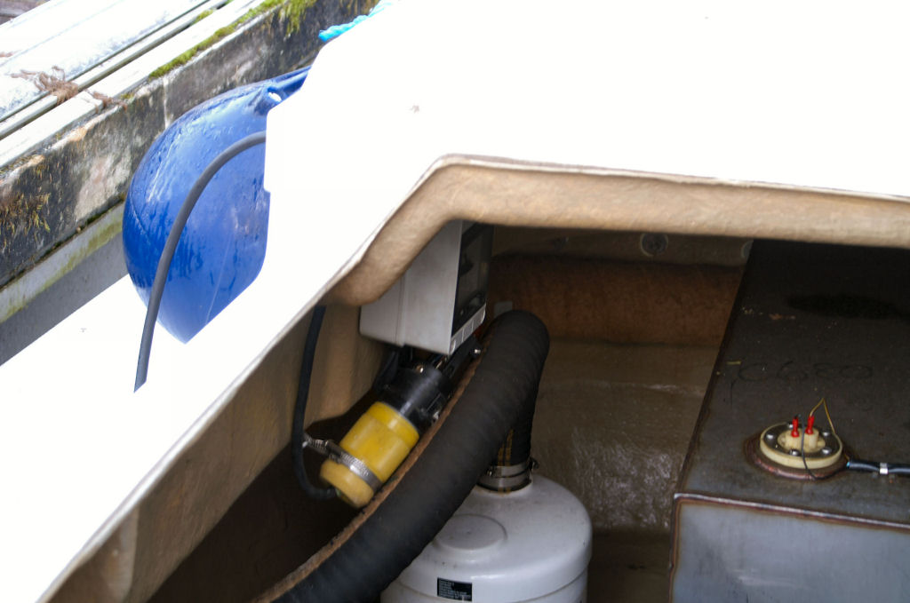Hier kommt das Landstrom-Kabel durch die Bootswand. Es lässt sich nicht abnehmen.