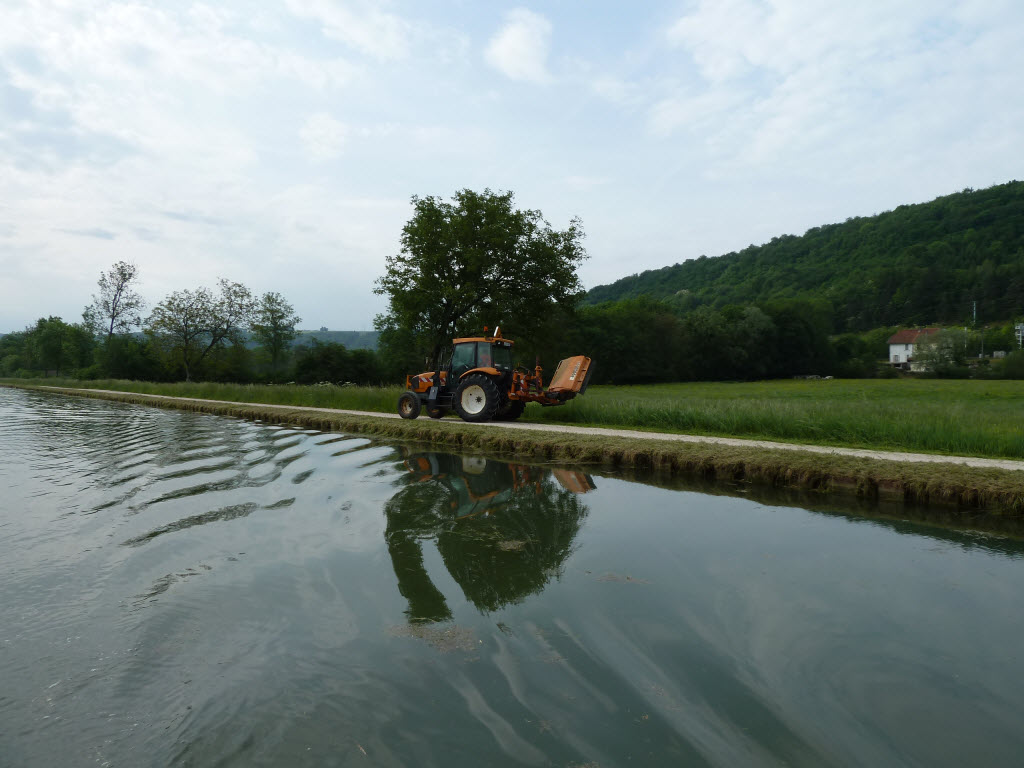 Die Kanalufer werden gemäht. So sieht man dann die Poller wieder.
