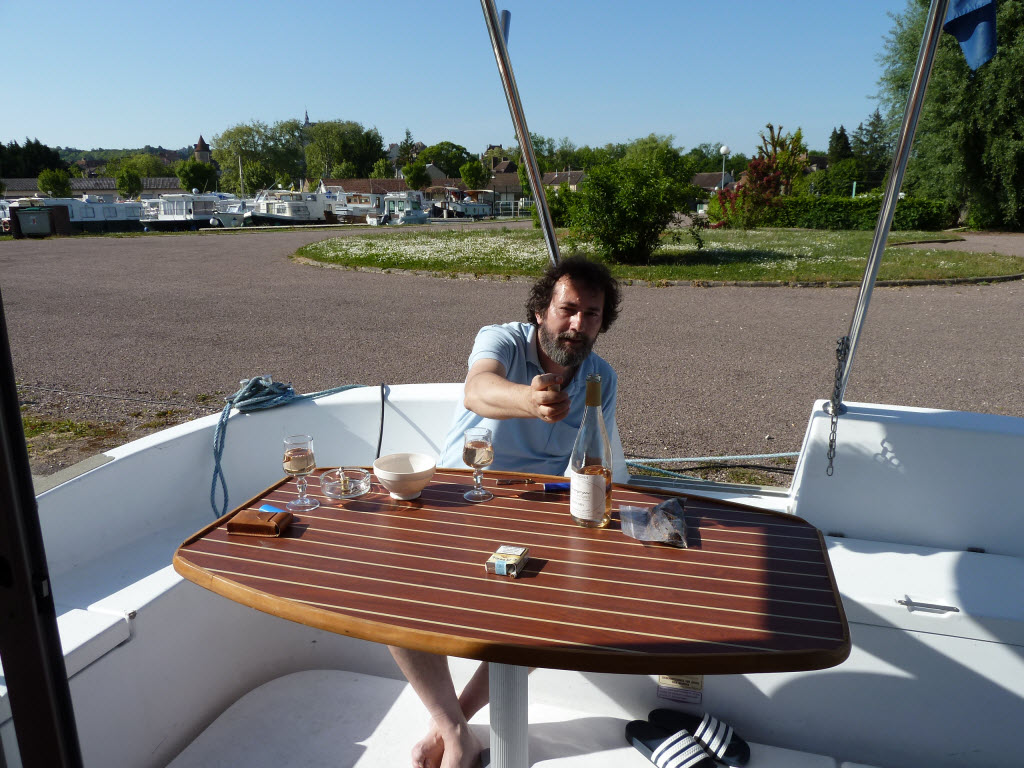 Am Eingang zum Canal de Bourgogne warten wir lange auf den Schleusenwärter. Dieser bedient zwei Schleusen und begleitet zuerst zwei andere Boote. Aber er ist sehr freundlich, wie überhaupt alle Eclusiers unterwegs und sogar die Fischer!
