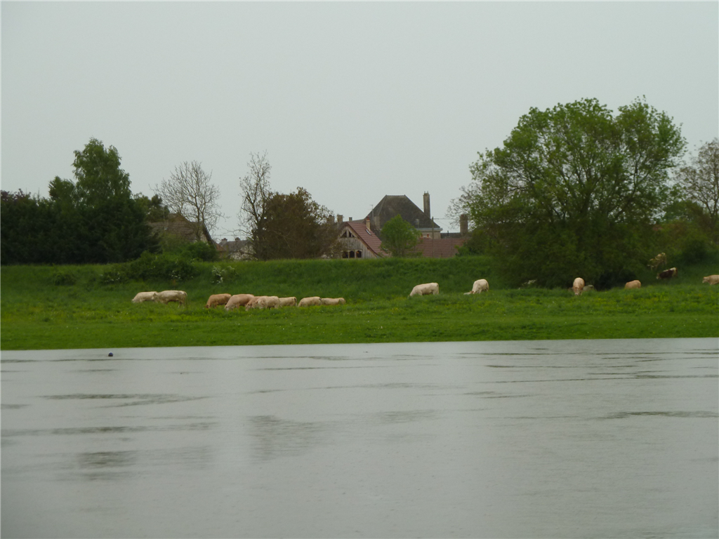Den Charolais-Kühen macht der Regen nicht viel aus