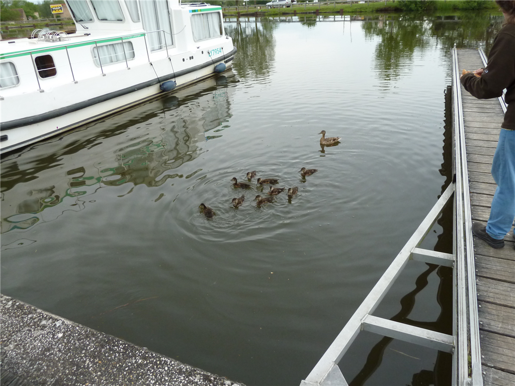 Eine Entenfamilie mit Hunger
