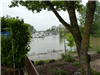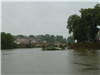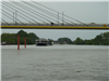 Heute sind die Tanksäulen noch da... und mit dem Boot kommt man noch knapp hin Die Säulen wurden extra höher montiert, wegen den Hochwassern. Und es regnet immer noch Mit Volldampf Richtung Kanal