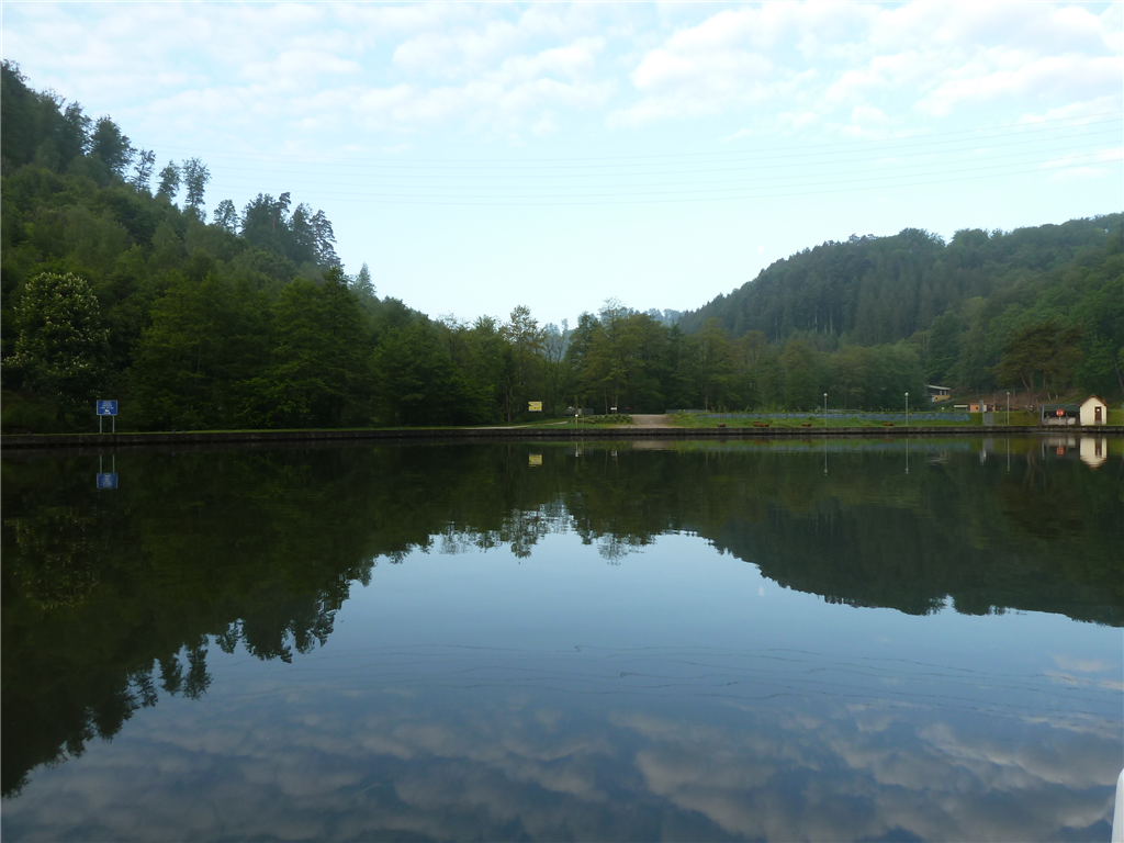 Das Wartebecken unterhalb vom Schiffshebewerk am frühen Morgen