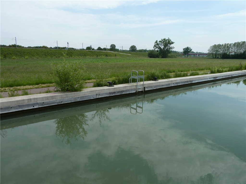 Ganz neu betonierte Ufer, mit Badeleiter