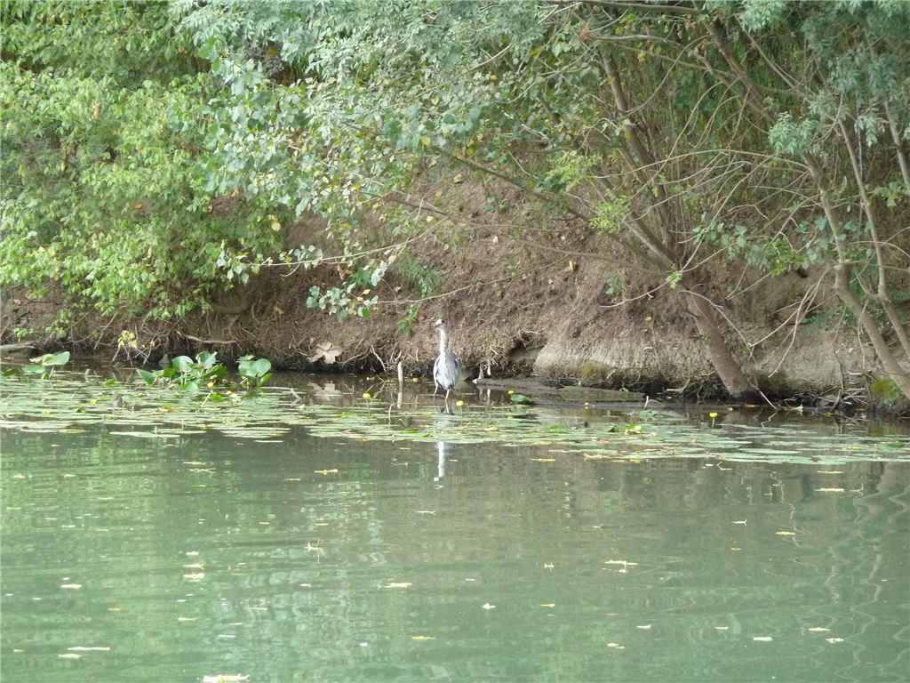 Reiher finden in der Hafendurchfahrt von Chalon viele Fische