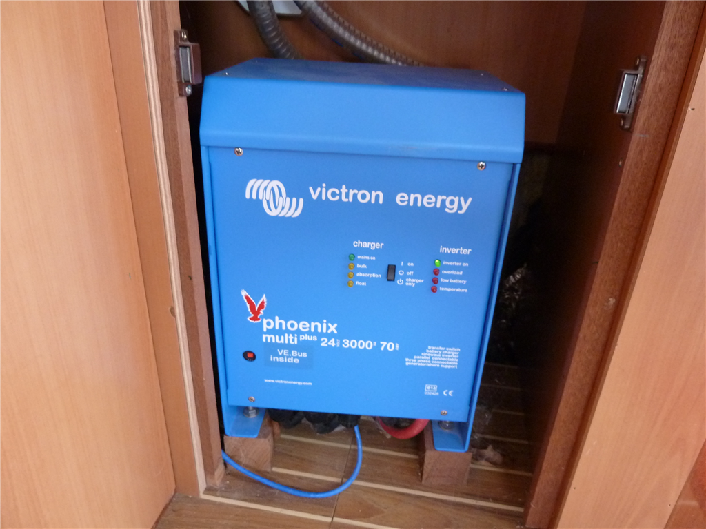 Der Victron steuert die ganze Elektrik, von Land und Motor und Batterie und so weiter