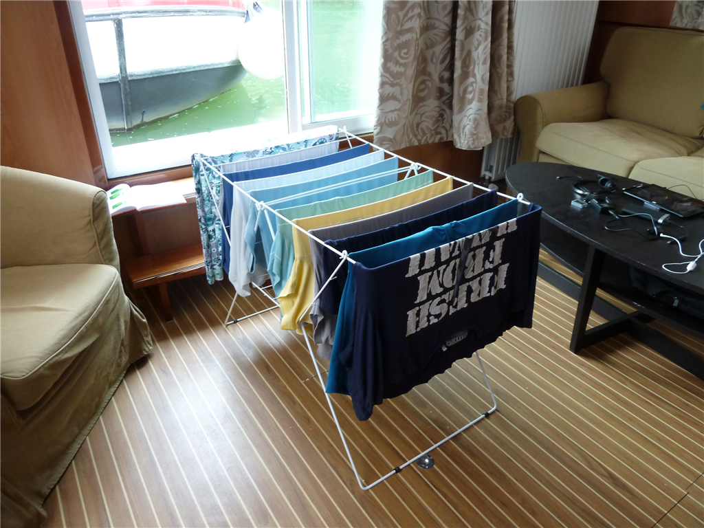 Die zweite Schleuse zeigte Rot, wir warteten in der Pampa. Das war mühsamer als sonst, weil man das Boot keine zwei Minuten aus den Augen lassen durfte. Die Bugschraube war hier Gold wert.