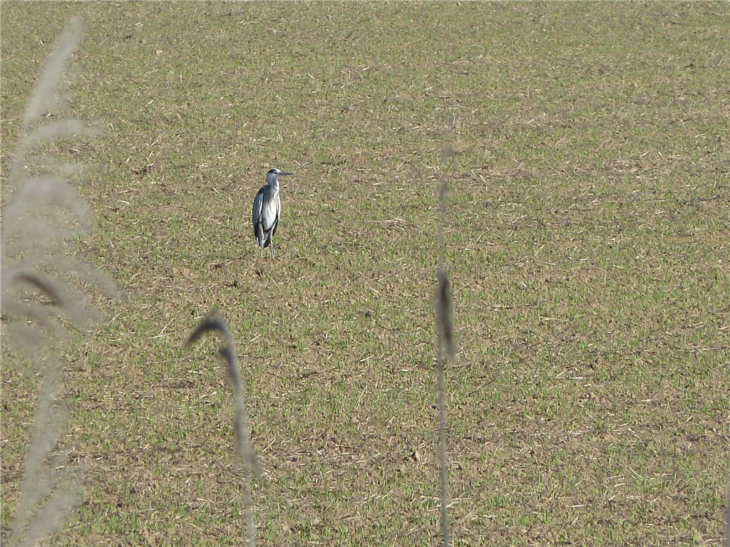 Reiher spielt Storch auf dem Feld