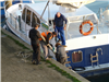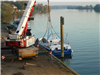Boot im Wasser, alles tiptop Und da kommt das nächste An dem bisschen Stahl werden 26 Tonnen Schiff aufgehängt
