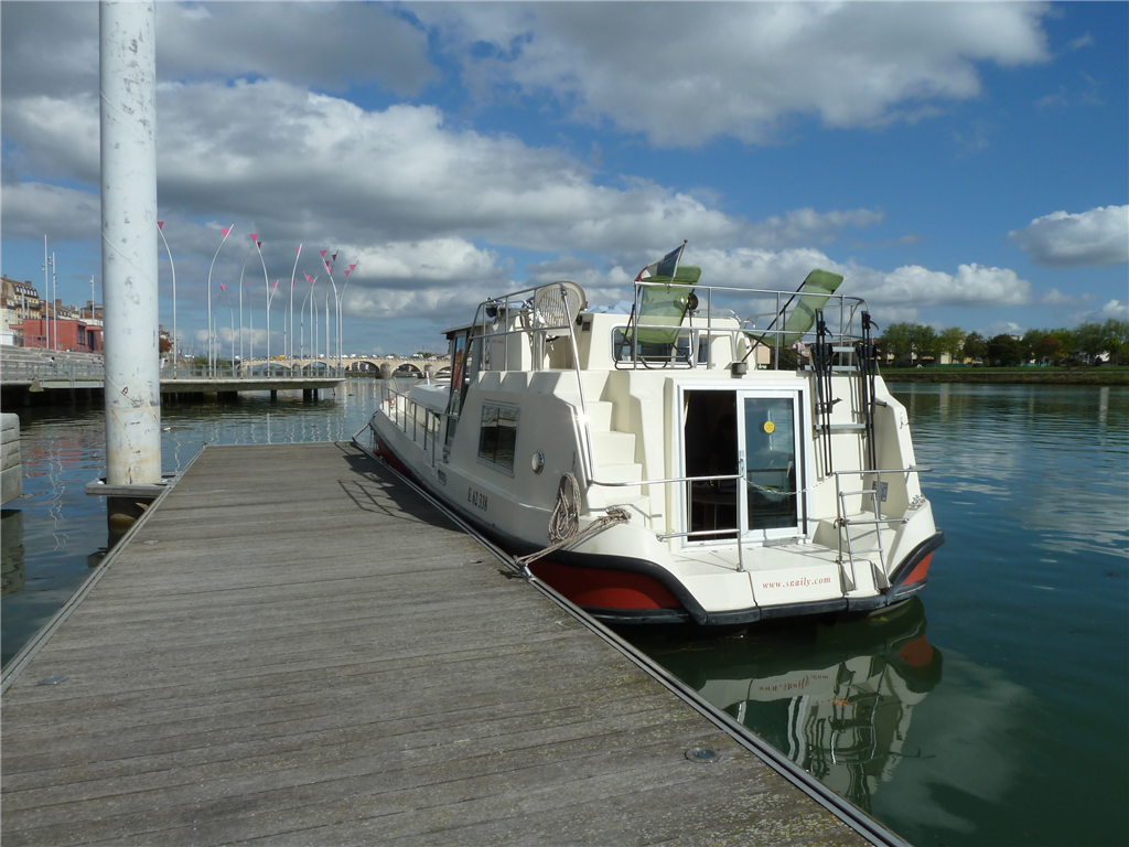 Abends waren wir immer noch allein am Steg und oben auf dem Quai hatte es komische Gestalten. Da war ein Geläuf und Gemischel hinter den Parkhaushäuschen, deshalb wollten wir das Boot nicht allein lassen und holten vom Snack feine Merquez-Frites-Sandwiches mit Bier.