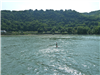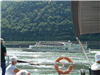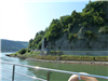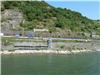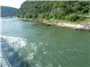 Jetzt, genau wo alle die Loreley sehen wollen, müssen die da putzen und scheuchen die Passagiere von der Reling weg.