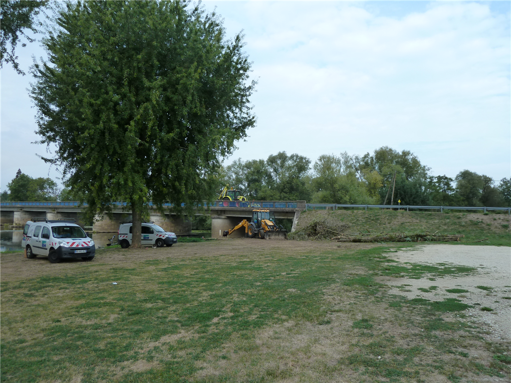 Unten VNF am Bäume schneiden, oben der Gemeindedienst am Strasse putzen.