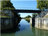 Eine Péniche aus der Schleuse geht Richtung Heuilley