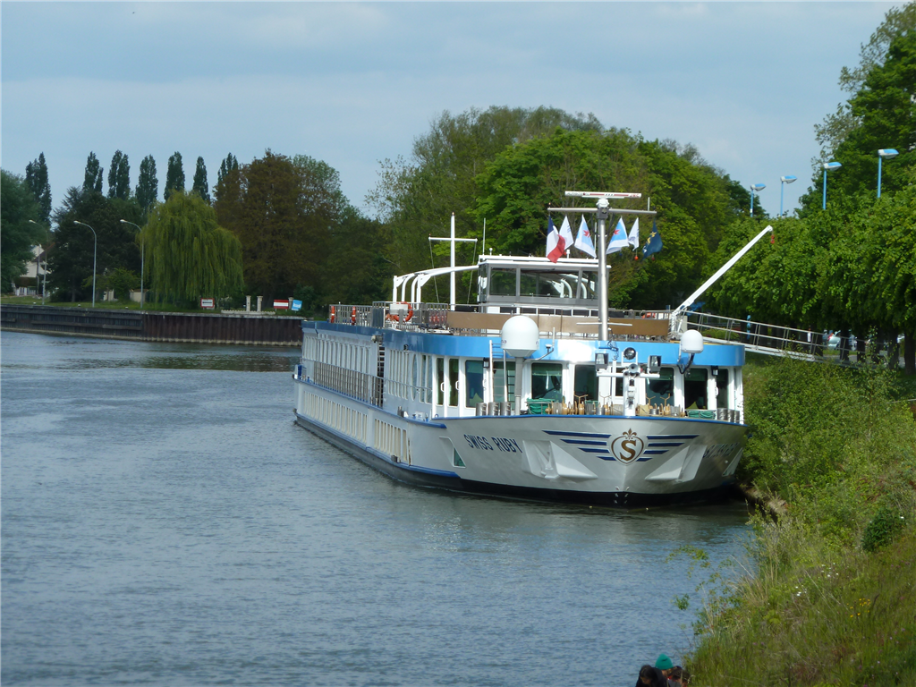 Nach der Rückkehr zum Schiff gab es Mittagessen, danach legten wir ab für die erste kurze Etappe nach Pont Sainte Maxence. Wir hatten noch Zeit vor dem Abendessen und beschauten das Örtchen. Neben der Kirche Sainte Maxence gab es einen schönen Garten mit einer Statue von Saint Louis, und weiter oben im Garten des Pfarrhauses - ein wunderbarer "Pflanzblätz" - zeigte sich eine Statue von Jesus. Der Pfarrer verscheuchte uns neugierige Touristen dann freundlich... Das Diner war wie immer fein und üppig.