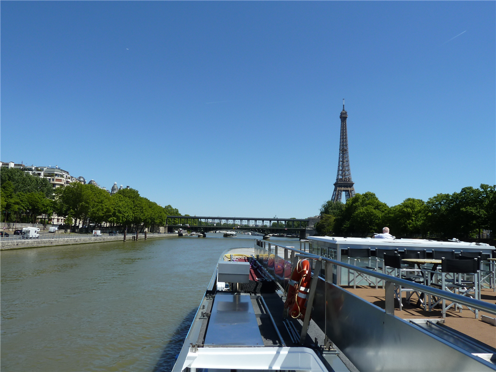 Am frühen Morgen legten wir im Paris am Port de Javel Bas an. Nach dem Frühstück stiegen wir ausnahmsweise mit den anderen Ausflüglern in den bereitstehenden Bus, um Paris zu besichtigen. Leider hatte es viel Stau, eigentlich bestand die ganze Stadt nur aus Stau. Unser Bus zwängte sich durch, so gut er konnte, und die Führerin erzählte vom Pariser Verkehr, von Kunst und Architektur und was es so zu sehen gab. Das Maison Cartier hob sich von den anderen grossen Juwelierläden ab, es hatte schöne rote Geranien an den Fenstern. Zwischenhalt machten wir am Eifelturm, am Jardin du Luxembourg und ?, am Ende musste der Bus unter einem Hochhaus verbotenerweise wenden, weil die Autos ihm nicht genug Platz zum Abbiegen liessen.