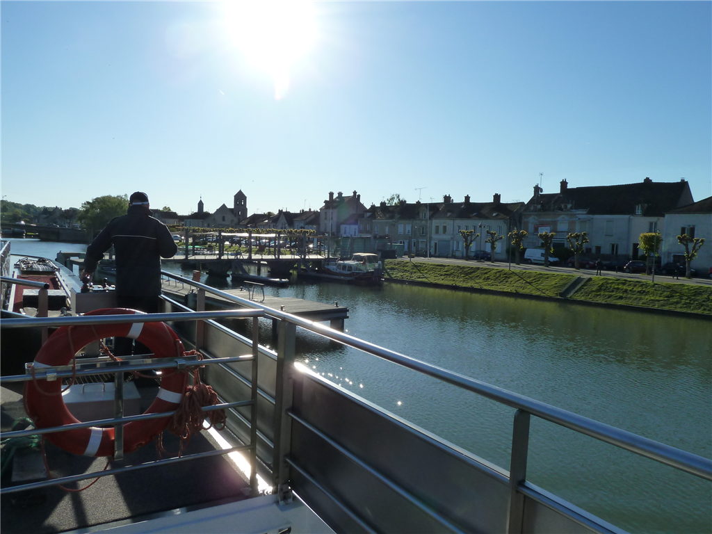 Frühmorgens um fünf legte die Ruby ab. Die obere Seine war wirklich ein hübscher Fluss, mit grünen Wäldern und schönen Häusern an beiden Ufern. Nach dem Frühstück legten wir in Saint Mammès an, an einem schönen, neu gemachten Steg. Saint Mammès war ein Binnenschiffer-Ort und zeigte stolz seine Geschichte mit einer ehemaligen Schleuse, einem Museumsschiff, schönen Bildern der alten Flussschifffahrt an den Wänden und vielen bewohnten Pénichen. Wir waren nur einmal vorbeigefahren und hatten das alles nicht bemerkt. Während die meisten Gäste einen Ausflug zum Schloss Fontainebleau machten, spazierten wir zu dritt in den Ort, dem Fluss Loing entlang und tranken im Café Maeva einen Coup de Blanc.
