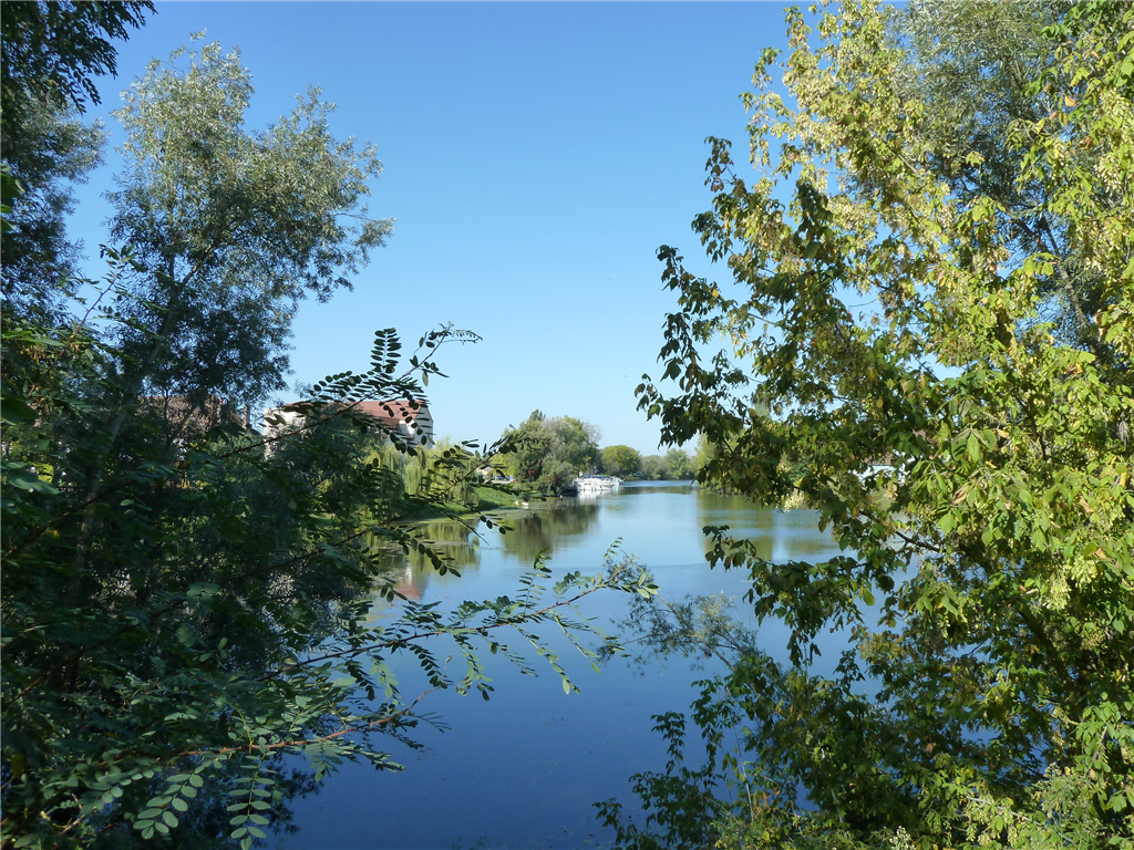 Blick von der Stadt Louhans zum Hafen