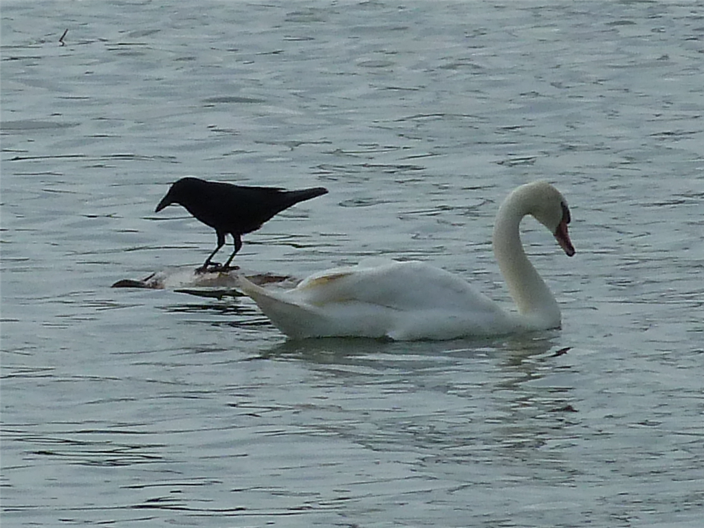 Die Schwäne stören sich nicht am Raben