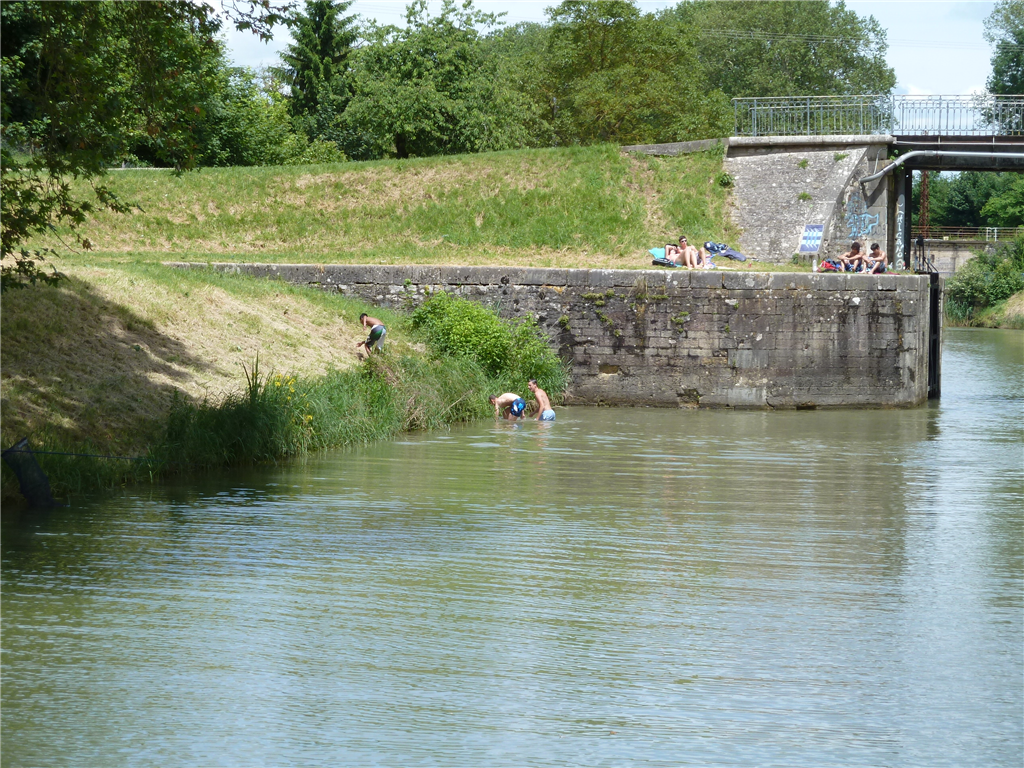 Beliebtes Badevergnügen: knapp vor dem Boot von der Brücke springen.