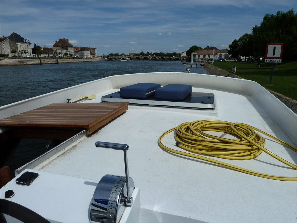 Zwei Polster auf dem Sonnendach schützen vor der Sonne.