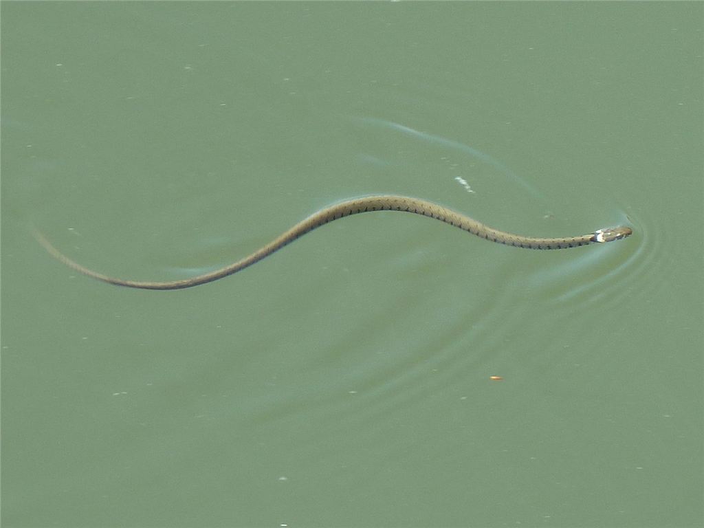 Es ist wieder eine Ringelnatter. Die mögen uns wohl.